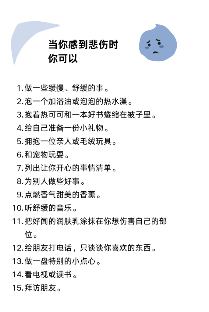 B:我在病情较为严重的时期也频繁自伤,但我很怕尖锐性的疼痛也很怕流血觉得那样很恐怖,所以我的自伤方式是扇自己巴掌……为了戒掉这个方式,我先是换了一种伤害程度低一些的方式(用指甲抠手背),然后随着治疗慢慢地都停了。我的自伤目的主要是自我惩罚,其次才是缓解不良情绪,我上述的“替代”实际上是我觉得自己犯了错必须被打一顿。我在2019确诊双相情感障碍,现在经过医疗手段以及自我调节,已经恢复得很好,社会化程度很高,情绪平稳到有些麻木,但在极其偶尔的时候,情绪出现巨大震荡时,为了不在人前崩溃,我还是会抠手背,但我现在的偶尔自伤都只是为了缓解不良情绪,不再是为了惩罚自自己了。